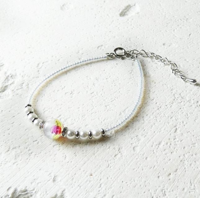 [素材] ロジウムメッキ(金具)、ガラスビーズ、メタルビーズ、樹脂パール